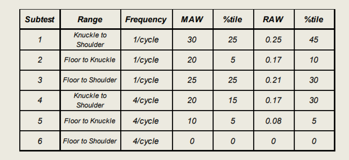 EPIC Lift Capacity负重能力评估系统(EPIC Lift Capacity Evaluation System)文献索引(部分):