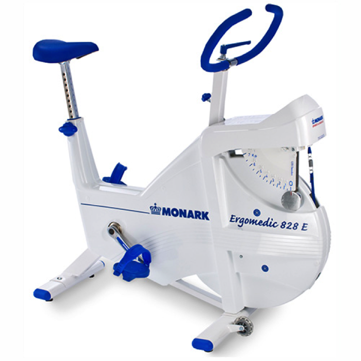 Monark 828E Ergometer- Monark Ergomedic Cycle The Monark 828E is the world’s most widely used test bike for fitness tests and worktests. It is easy to calibrate and just as easy to check when in use. You know that all the values are always accurate. The Monark Ergomedic Cycle uses flywheel technology to provide clinicians with accurate cardiovascular testing and fitness assessments in clinics, hospitals and training institutions. It uses the Monark Analysis software to store and analyze patient data. Meanwhile, the display keeps both the patient and the clinician aware of progress. Includes Monark Analysis software for storing and analyzing patient data Display shows heart rate, time, speed, distance and pedal RPMs Telemetric HR belt Meter shows resistance in kilos.pounds or newtons and power in watts One-year parts warranty Max user weight is 550 lbs. MONARK 828E ERGOMETER TECHNICAL DETAILS: CERTIFICATIONS :EU directive 93/42/EU class IIa FRAME TYPE :Medical Classic HANDLEBAR :Monark handlebar SEATPOST:Monark Standard SADDLE:Saddle, blue BOTTOM BRACKET:68/122 mm CRANK:Steel, 170 mm PEDALS:s 9/16”, pedals with foot straps SYSTEM : Pendulum WORKLOAD RANGE:4-1400W FLYWHEEL :20 kg DISPLAY :RPM, HR(5 kHz), Time, Speed, Distance, Watt MAX USER WEIGHT:250 kg, 551lb LENGHT:1120 mm WIDTH:518mm at handlebar, 640 mm at support legs HEIGHT:945-1295 mm at handlebar 780-1105 mm at saddle WEIGHT:52kg POWER REQUIREMENTS:Batteries in the display